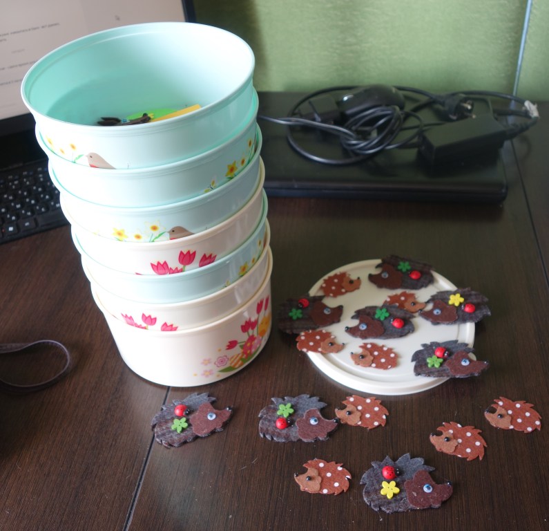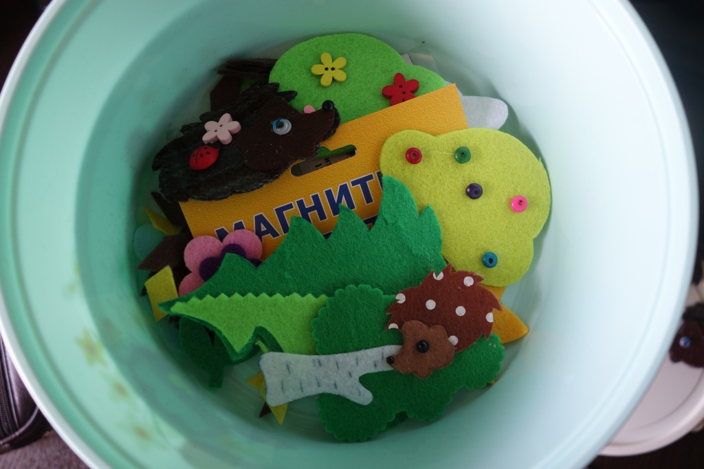 PS. Предварительная работа накануне занятия (нарезаны комплекты магнитиков из фетра, приобретенного в рамках проекта, комплекты разложены по органайзерам, для каждого ребенка).